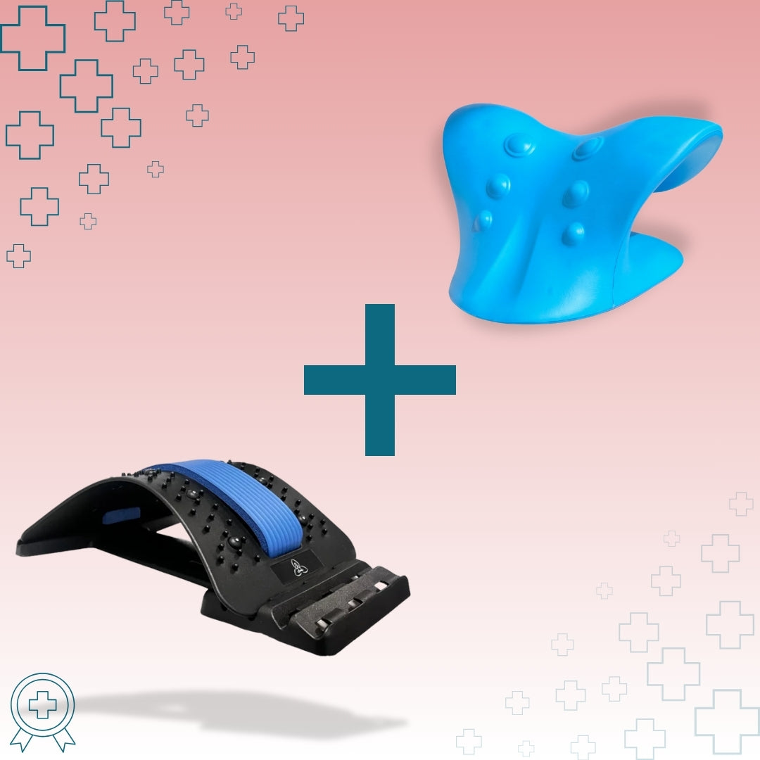 Tämä suosittu paketti yhdistää niskakaarituen ja selkäkaaren, jotka auttavat rentouttamaan lihaksia, parantamaan ryhtiä ja tukemaan selän hyvinvointia. Täydellinen valinta päivittäiseen kehonhuoltoon kotona.
