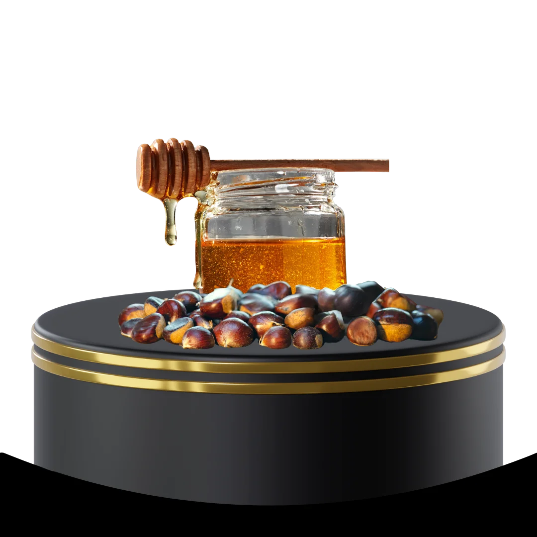 - 280g herkullista raakakastanjahunajaa, joka on tuotettu metsässä kaukana kaupunkiympäristöstä.